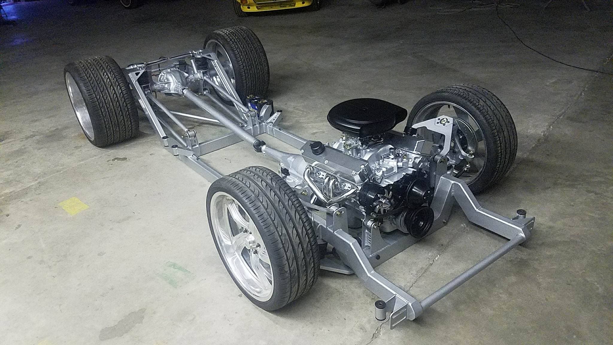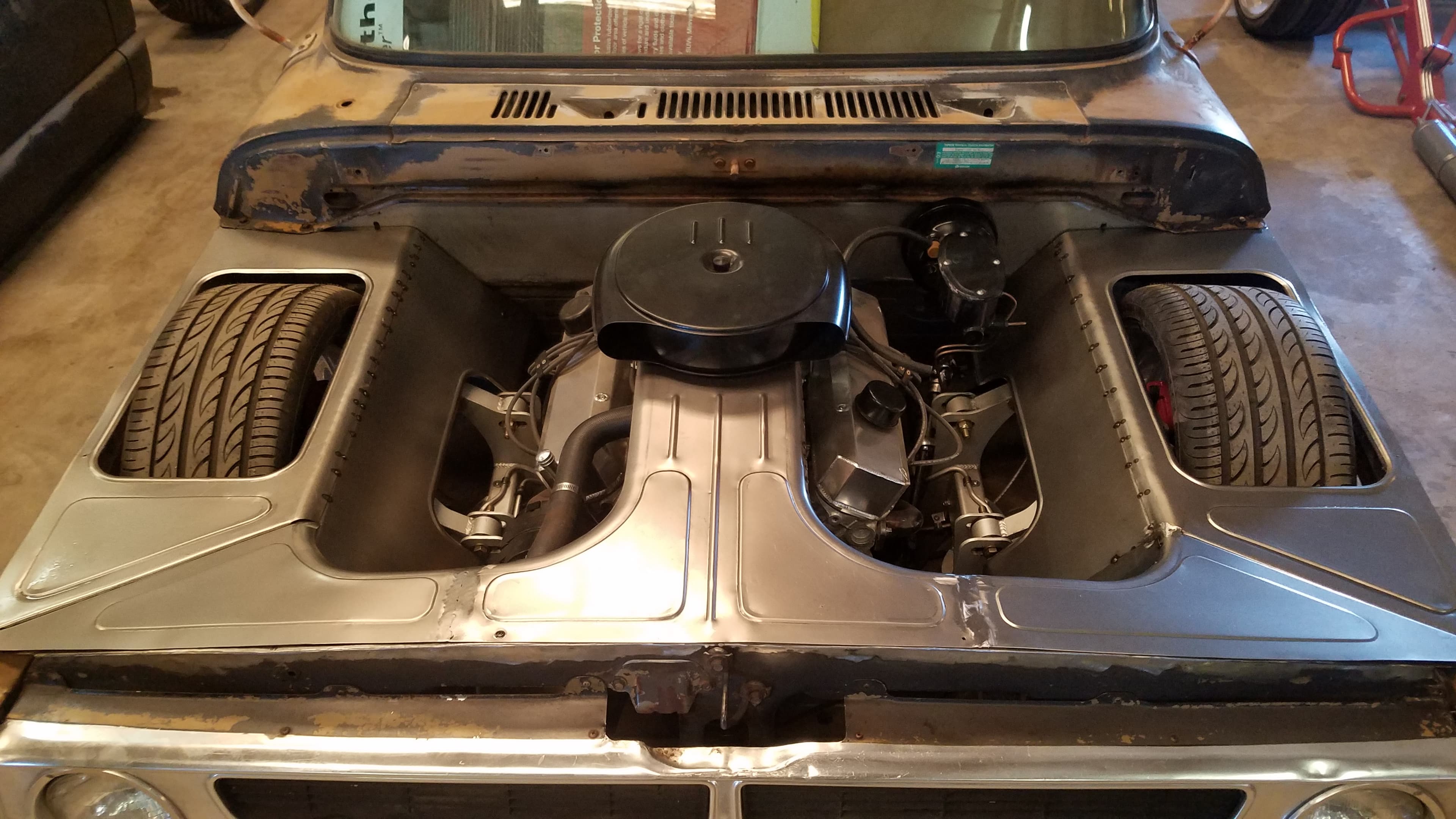 Huge 24×15 and 22×9 wheels are squeezed into custom fabricated wheel wells and are suspended by Airlift 3H and Viair 480s compressors.
