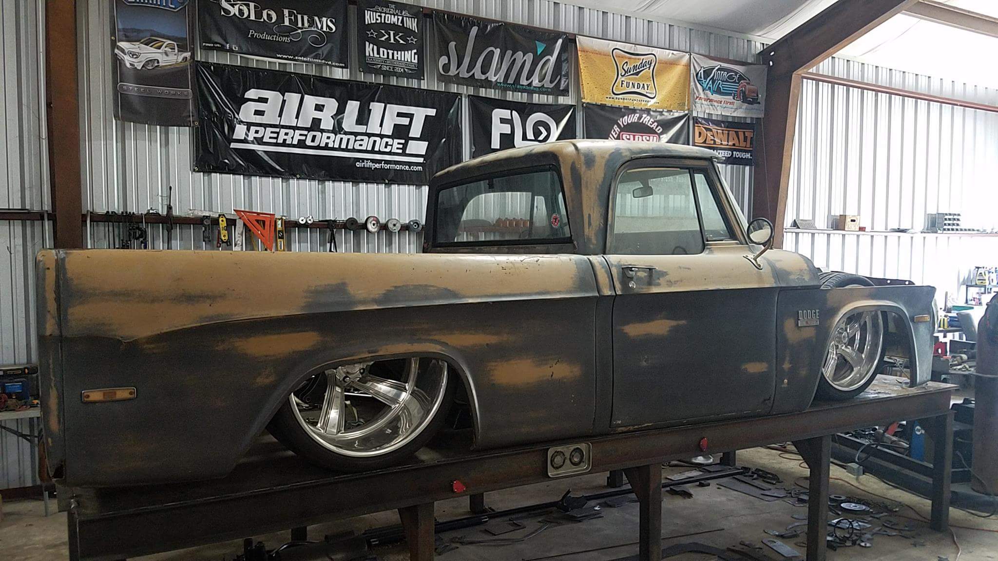 When he set out on the project Carl really wanted to do something different. Not your usual a C10, S10 or even a niche classic truck. He is well known for bodydropping everything and this Dodge is no different. He wanted to do something that no one has really bodied on a big set of billets and I think it is safe to say this Dodge is unique!