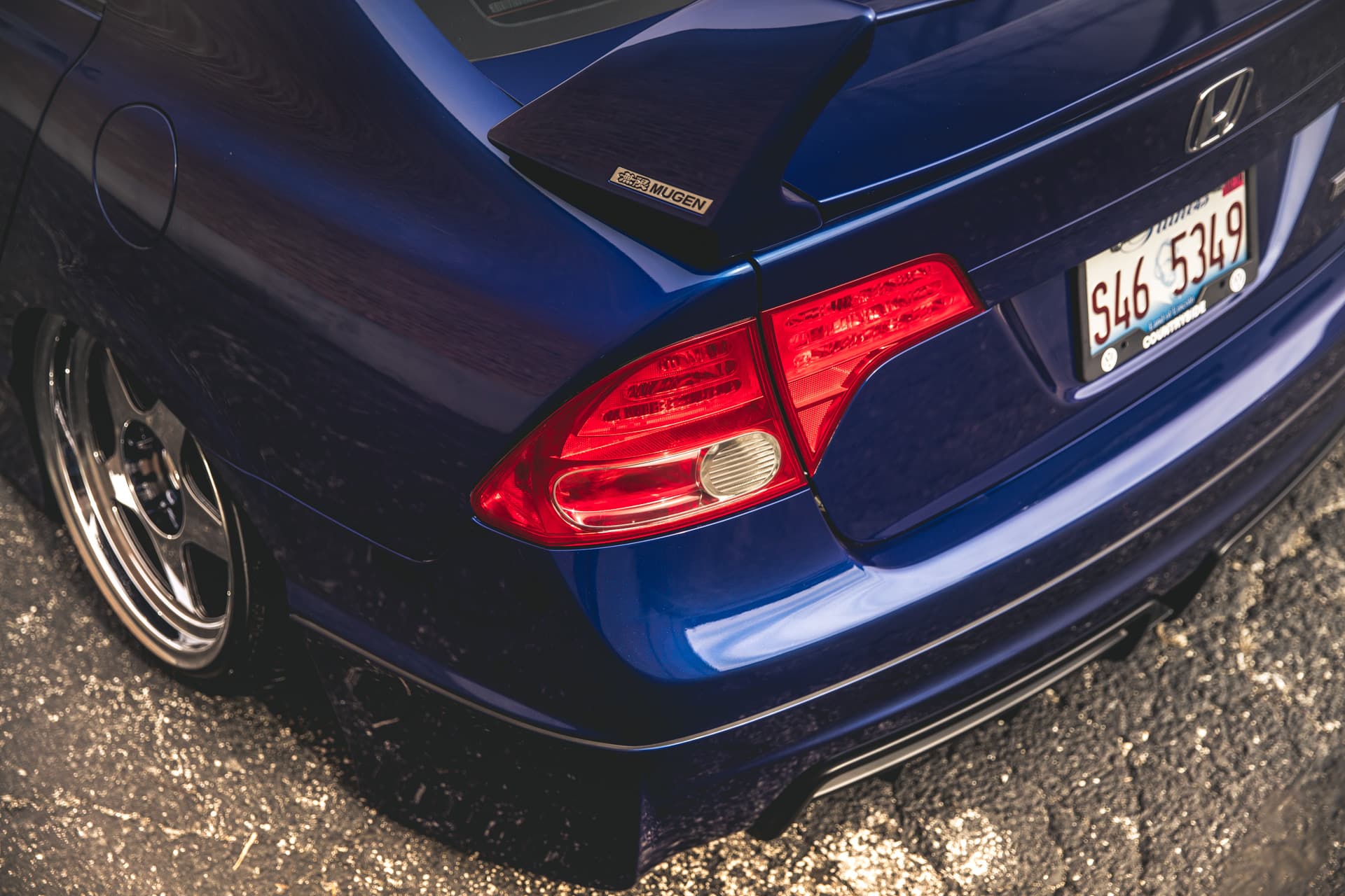 The Mugen Si came only in Fiji Blue Pearl, and featured a higher-flowing cat-back exhaust, an exclusive Mugen grill, an exclusive shift knob and of course a Mugen body kit. The factory body lines are what originally drew Ronnie to the car and he has left them just as Mugen intended.